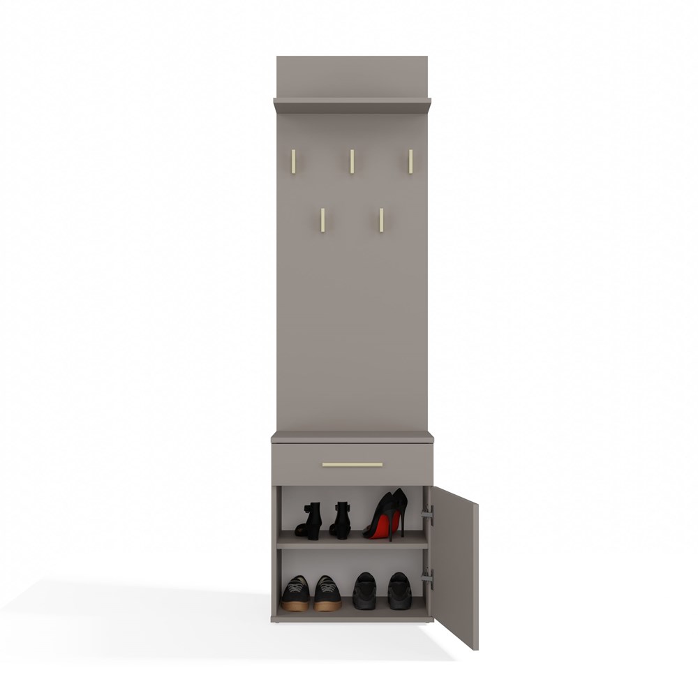 • Praktyczna szuflada i dodatkowa szafka na buty – wygodne przechowywanie butów i drobiazgów