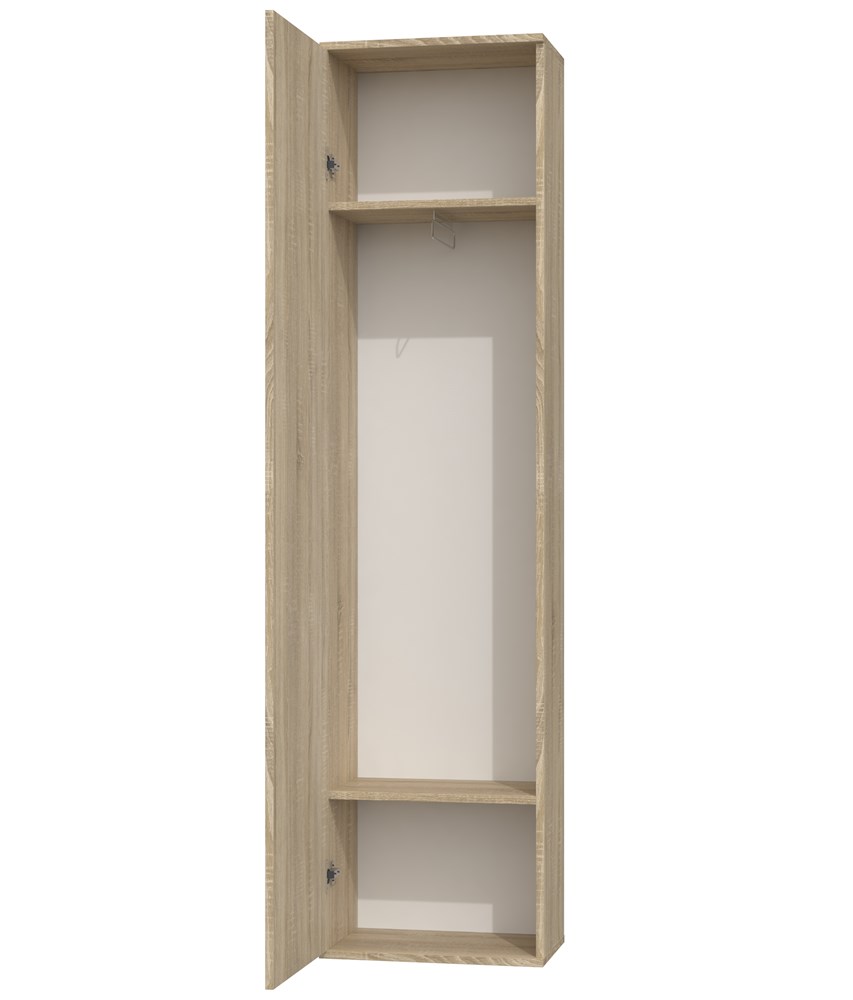 - Praktyczne wnętrze: Wyposażona w dwie pojemne półki oraz uchwyt na wieszaki, zapewnia wygodne przechowywanie ubrań i akcesoriów.