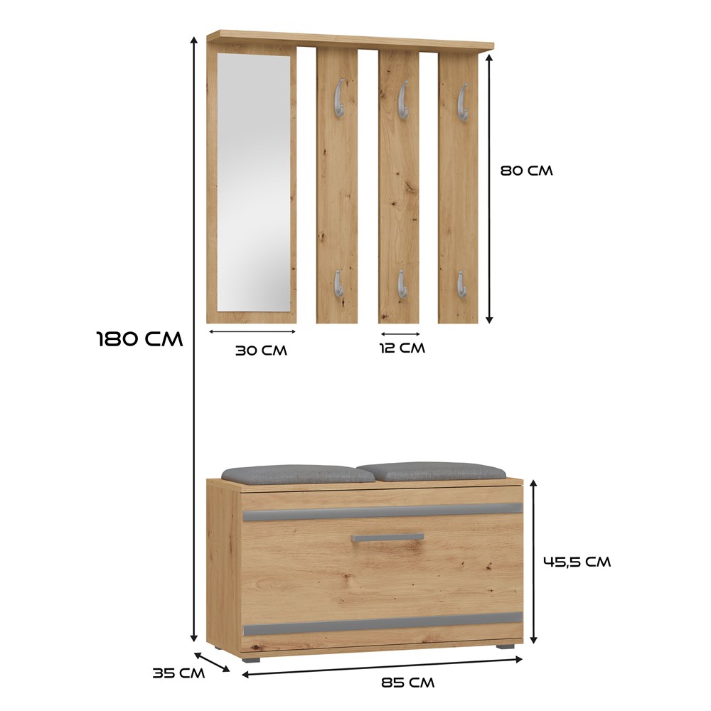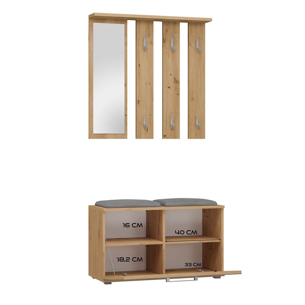 GARDEROBA FRAME – PRAKTYCZNY ZESTAW DO PRZEDPOKOJU Z LUSTREM, SIEDZISKIEM I SZAFKĄ NA BUTY