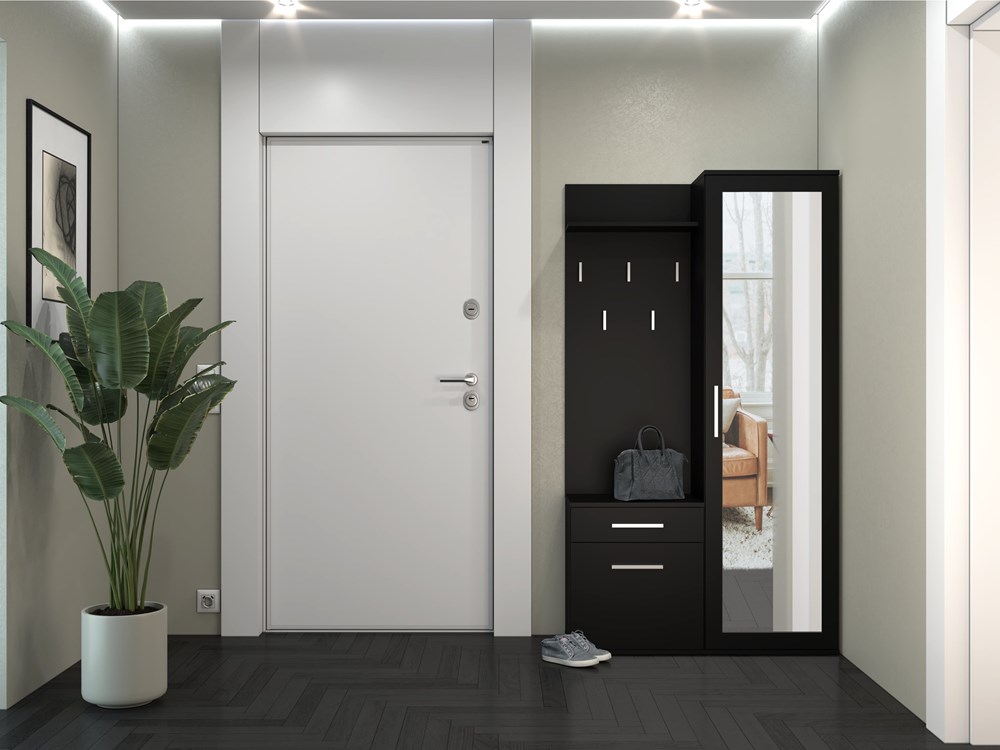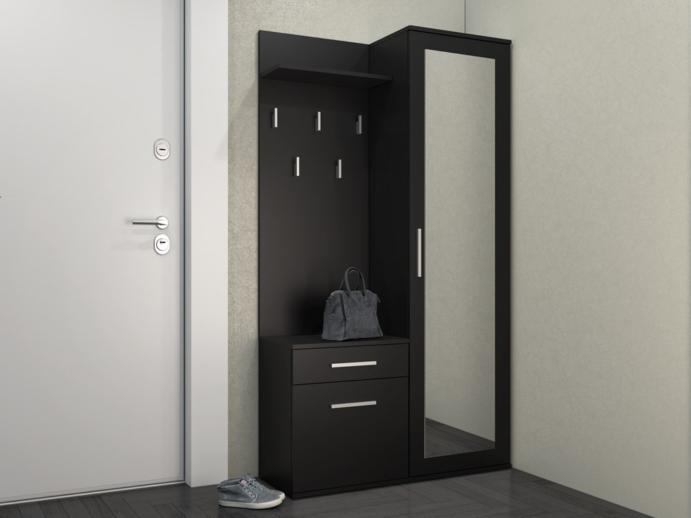 Ten mebel to świetny wybór dla osób poszukujących pomysłów na garderobę, które pozwolą maksymalnie wykorzystać przestrzeń, jednocześnie tworząc stylowy i praktyczny zakątek. Szafę, szafkę i wieszak można zamontować razem lub rozdzielić, dostosowując układ do indywidualnych potrzeb.