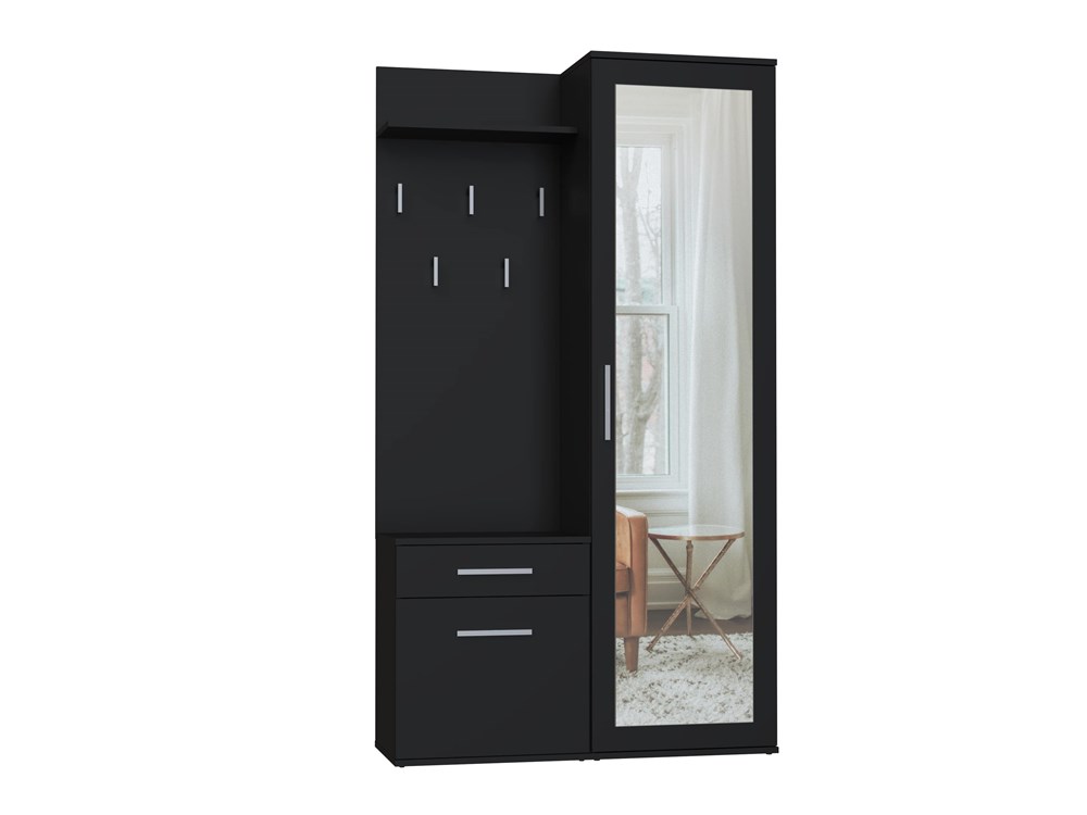 Nasza szafa z lustrem to doskonałe rozwiązanie dla osób planujących stylową i funkcjonalną aranżację garderoby. Dzięki nowoczesnemu designowi i wykończeniu w kolorze czarnym, mebel ten idealnie wpasuje się w każdy wystrój, łącząc prostotę z elegancją.