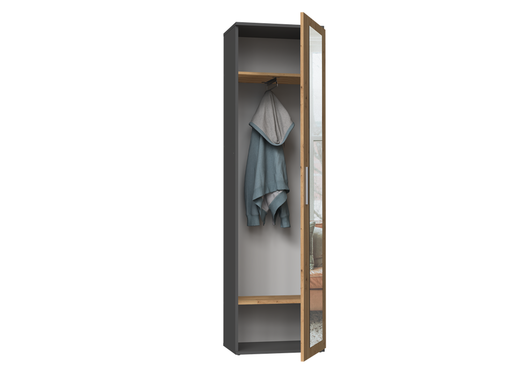 • Wielofunkcyjność: Szafa sprawdzi się świetnie zarówno w przedpokoju, jak i sypialni czy pokoju dziecięcym.