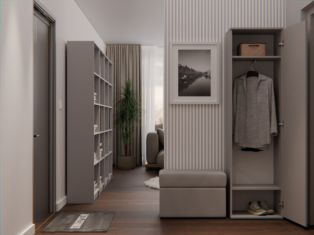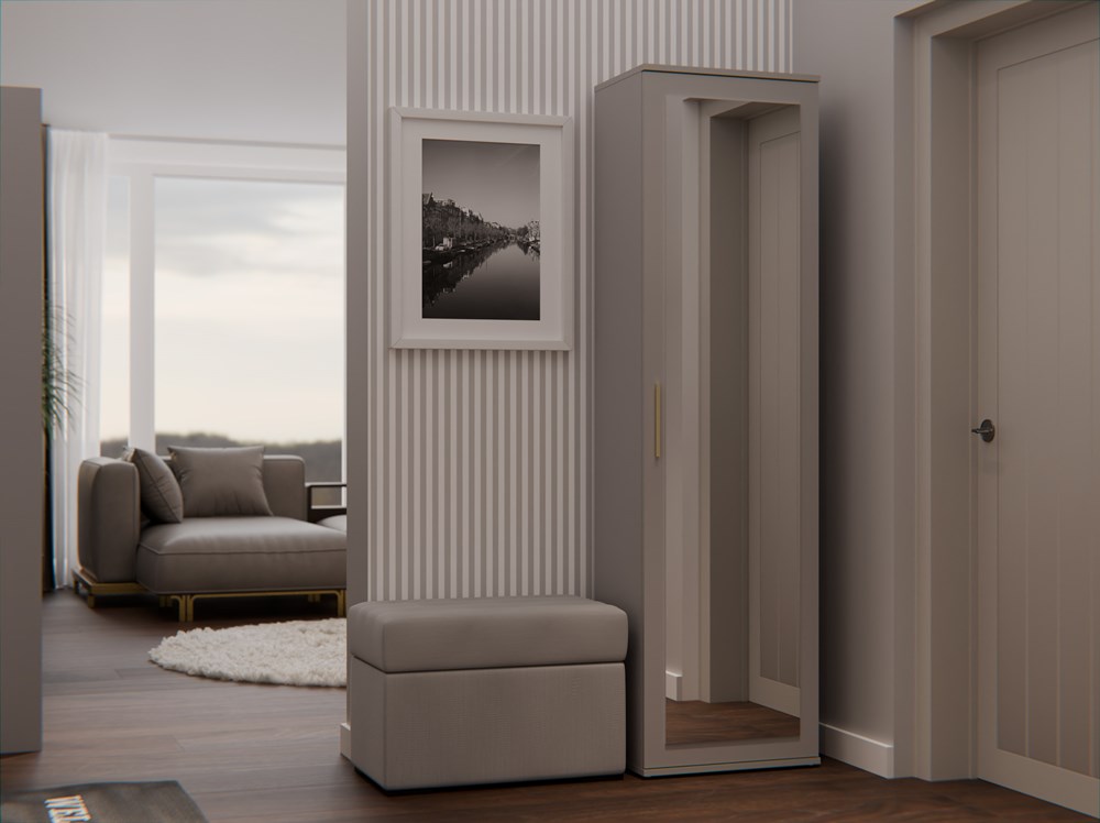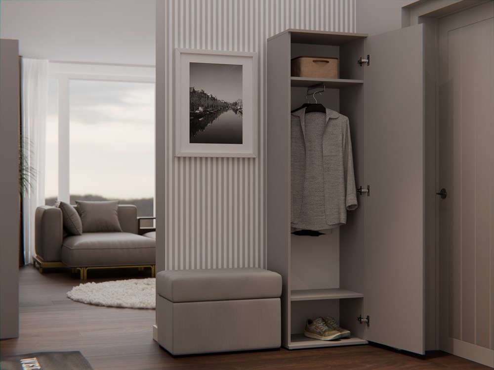 • Wielofunkcyjność: Szafa sprawdzi się świetnie zarówno w przedpokoju, jak i sypialni czy pokoju dziecięcym.