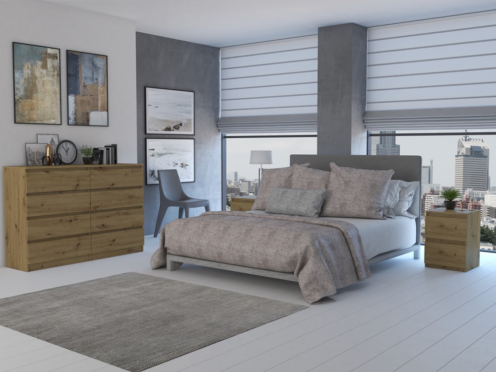 Kategorie: Duże komody, komody do sypialni, komody w stylu nowoczesnym, meble w kolorze dąb artisan.
