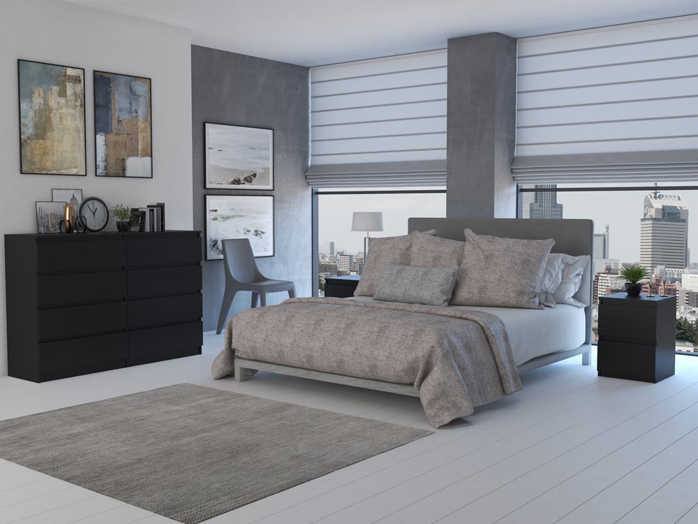 Kategorie: Duże komody, komody do sypialni, komody w stylu nowoczesnym, meble w kolorze czarnym.