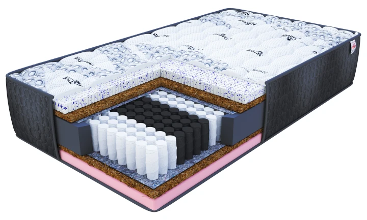 • Warstwa ekologicznego kokosu – poprawia wentylację i zwiększa trwałość materaca, zachowując naturalne właściwości antygrzybiczne.